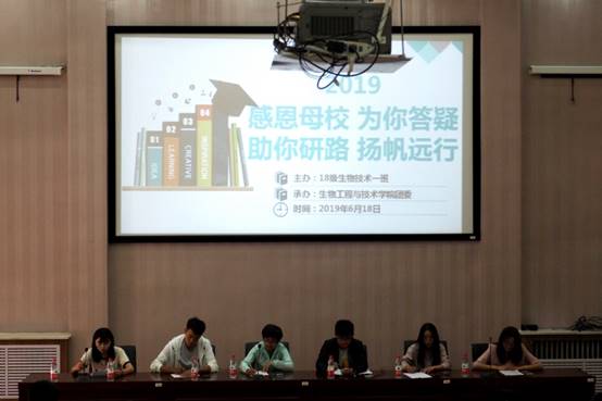 2019年6月18日早上,Ky官网在四号报告厅举行“感恩母校,为你答疑,助你研路,扬帆远行”为主题的学习经验交流会。本次活动由学院策划,学生党支部及分团委协办,18级生物技术一班主办。活动由李一婧老师主持,Ky官网大一学生约110余人参加。