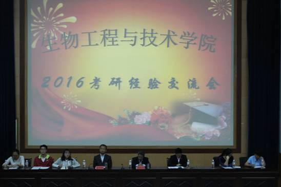 6名今年考研已录取的学生张多瑞(中南大学录取)、柳艳云(南昌大学录取)、张佳佳(南京师范大学录取)、袁海云(南京农业大学录取)、苟黎明(南京医科大学录取)及谢尚强(中科院大连化物所录取)分别介绍了他们考研复习、面试时的经验,并回答了同学们提出的复习与面试问题。最后,王廷璞院长从考研对同学们的人生意义、促进学院学科专业建设以及考研与就业的关系等方面作了总结发言。