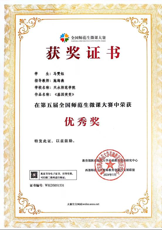 Ky开元集团学科教学(生物)研究生在第五届全国师范生微课大赛中获佳绩