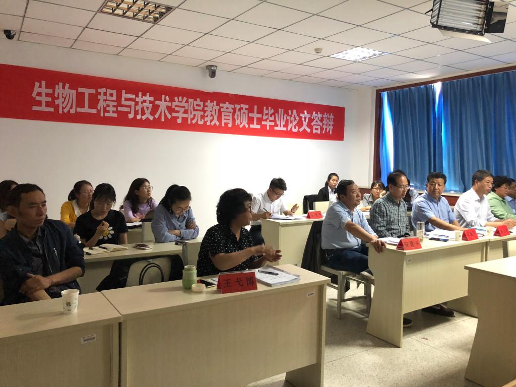 2018年6月2日,在4号实验楼517微格教室举行了Ky开元集团2018届教育硕士毕业论文答辩会。为保障答辩质量,学院专门成立了教育硕士答辩委员会,答辩委员会主席由西北师范大学生命科学学院龚大洁教授担任,成员包括宋廷军、石志学、安建平、焦成瑾、王弋博、袁毅君,答辩秘书为王倩宁。