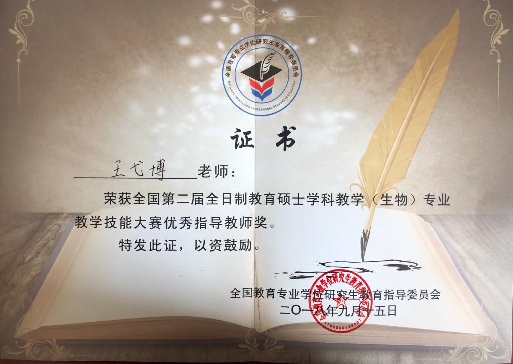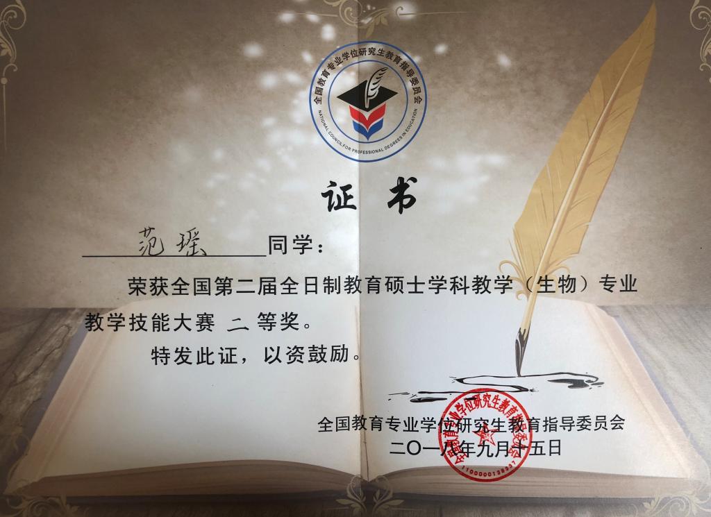 Ky官网教育硕士范瑶荣获2018年全国全日制教育硕士生物专业教学大赛二等奖