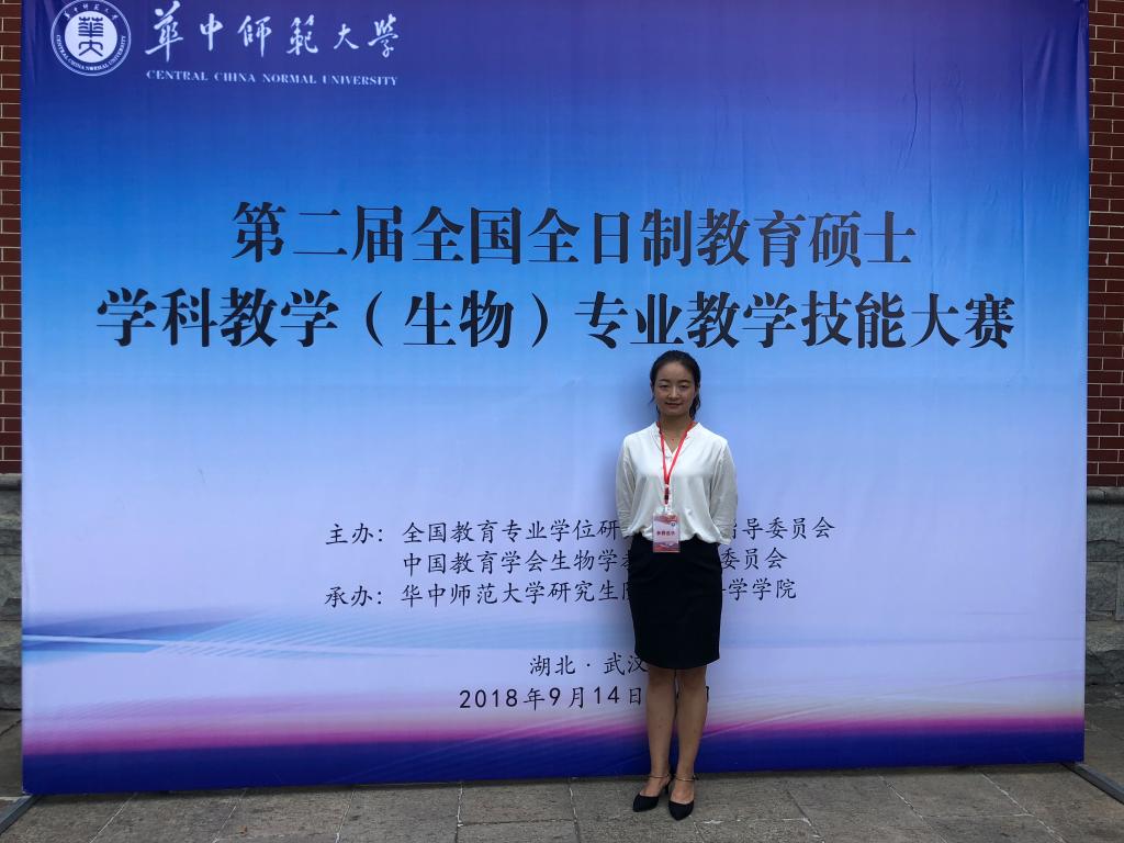 914日至916日,由全国教育专业学位研究生教育指导委员会、中国教育学会生物学教学专业委员会主办,华中师范大学研究生院承办的2018年全国全日制教育硕士学科教学生物专业教学技能大赛决赛华中师范大学举行,经过初赛选拔,共有来自全国55所教育硕士培养单位派出的88名选手参加大赛。天水师范学院Ky开元集团2017级教育硕士范瑶参加了本次大赛。