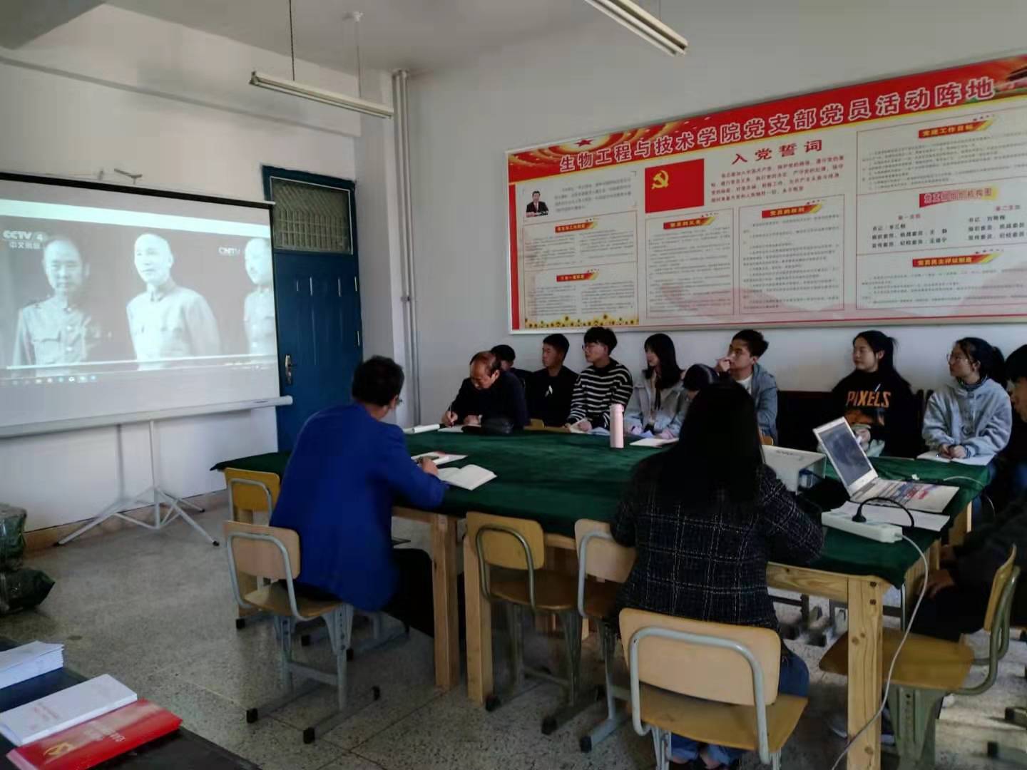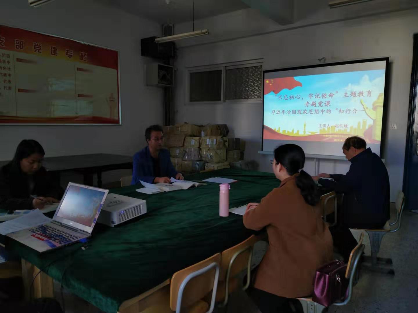 党支部认真组织党员集体观看了视频《北平解放前夜》,视频记录了党的奋斗史、创业史,描绘了中国共产党为寻求民族独立、自由、解放的艰辛历程。接着,支部组织委员杨金凤同志传达了学校党委“关于贯彻落实甘肃省委“不忘初心、牢记使命”主题教育巡回指导组推进会精神及进一步扎实做好“不忘初心、牢记使命”主题教育各项工作要求”文件精神,并领学了习近平总书记重要讲话《不忘初心、继续前进》(习近平谈治国理政(第二卷))。随后,党支部书记赵铁成同志为支部全体党员上了题为《习近平治国政治思想中的“知行合一”》“不忘初心、牢记使命”主题教育专题党课。最后,赵书记根据学校党委“不忘初心、牢记使命”主题教育办公室的统一部署及学院党总支的安排,对进一步扎实开展“不忘初心、牢记使命”主题教育工作进行了安排与要求。